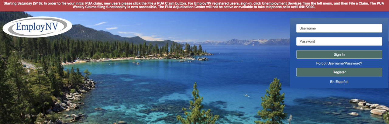 Please click forgot usernamepassword from the home page Under Option 3 select retrieve both select Individual and Next Complete Your Information and Submit. PUA filing process State of NV. Rural Areas and Out of State Callers.